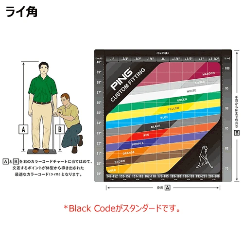 Notes1. These are design specifications that may vary due to manufacturing tolerances.2. Power Spec: A fitting option for players looking to boost their iron distance or decrease spin to hit a desired trajectory window. The Power Spec is a custom-designed loft configuration that delivers a power boost in a calculated fashion without sacrificing the integrity of the club’s design.3. Lie angle based on Black Color Code at standard length4. Standard swingweights for graphite-shafted clubs are 2 to 3 points lighter than shown, depending on shaft flex.5. Achievable swingweights depend on shaft and grip combinations.